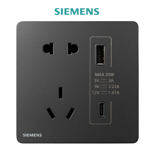 Ổ cắm 2 chấu + Ổ cắm 3 chấu kèm Ổ cắm USB 20W (Loại A&C) Incendo Siemens