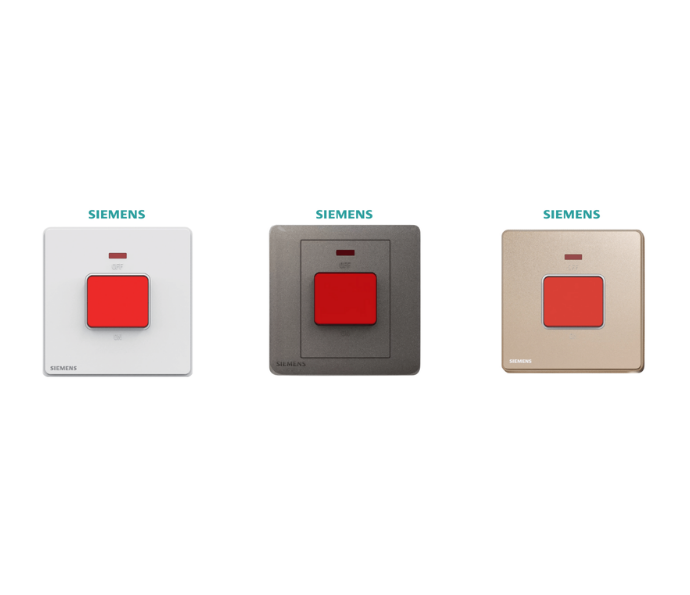 Công tắc bình nóng lạnh Siemens Arina được sản xuất với 3 gam màu thời thượng, phù hợp với nhiều phong cách nội thất: