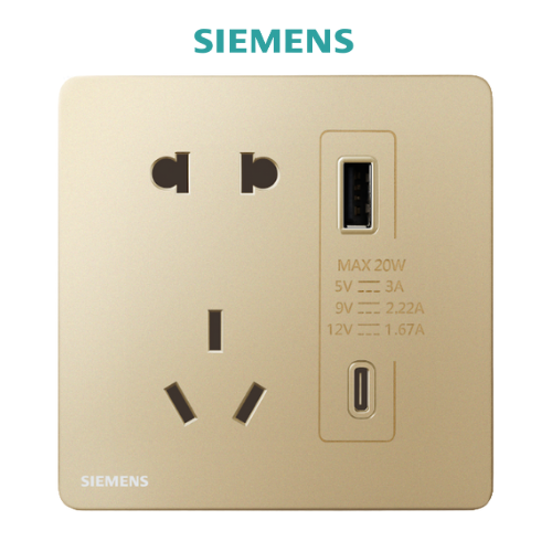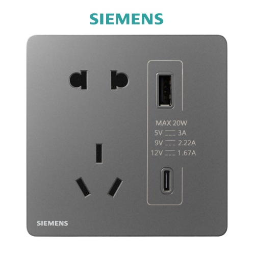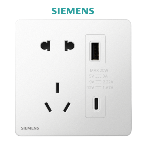 Ổ cắm 2 chấu + Ổ cắm 3 chấu kèm Ổ cắm USB 20W (Loại A&C) Incendo Siemens
