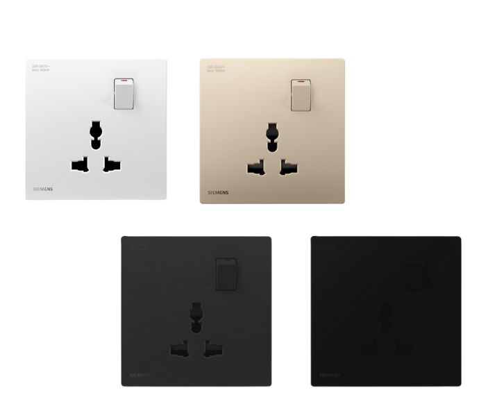 Ổ cắm đa năng có công tắc – không có cổng USB Peleus Siemens được sản xuất với 3 gam màu thời thượng, dễ dàng kết hợp với mọi phong cách nội thất: